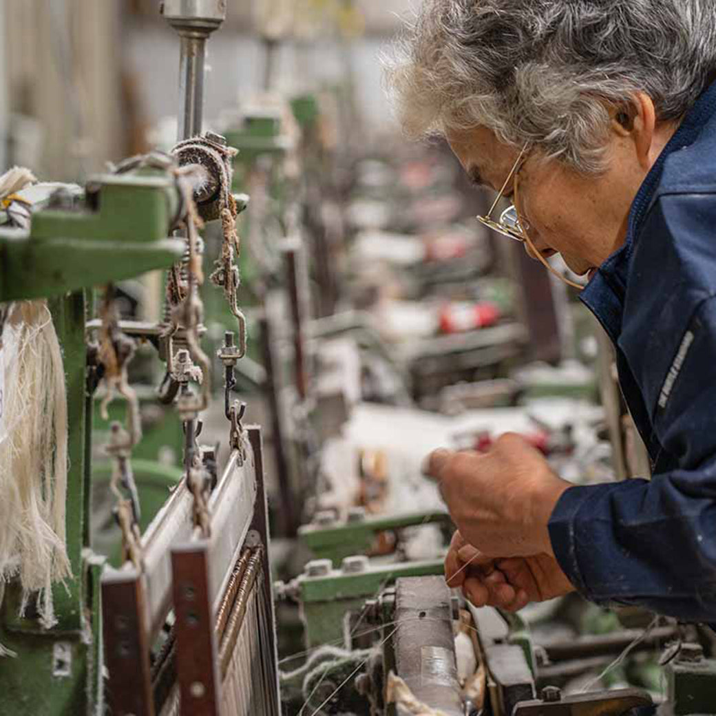 生地に「耳」のある小幅生地をはじめ、シャトル織機を使った、さまざまな風合いや厚さの生地をお届けしてきたサカエ織布。